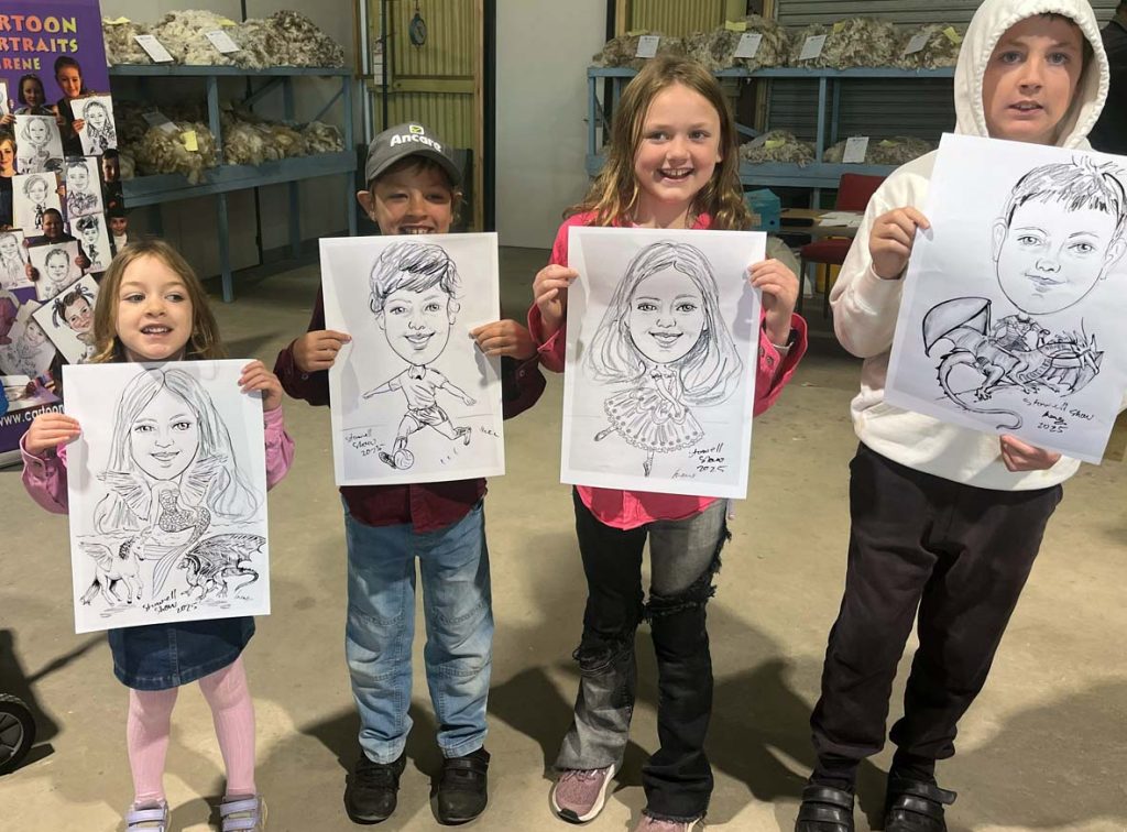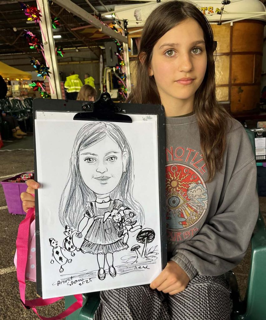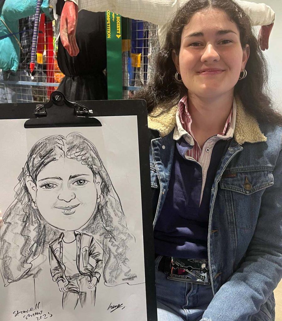 The Ararat Ag show on Sunday unfortunately this year’s show had terrible weather raining heavily in the morning and when the sun did shine the day was just about gone. The show committee had to cancelled horse events and rides; I was located undercover sketching portraits throughout the day.