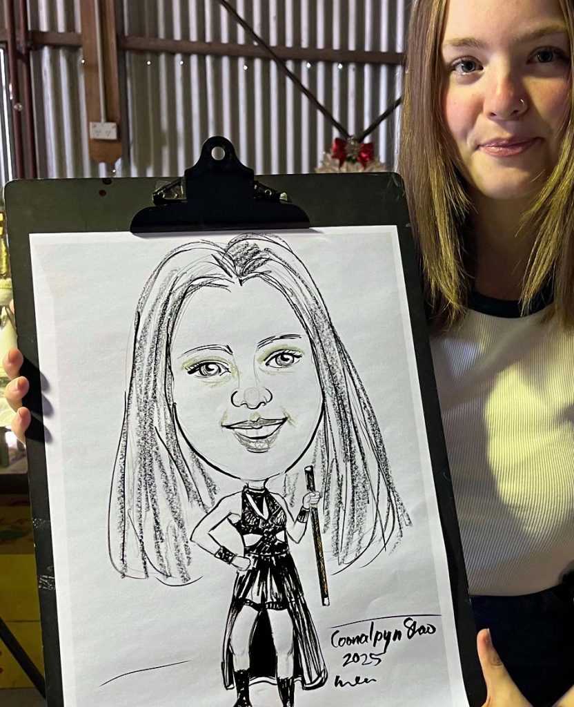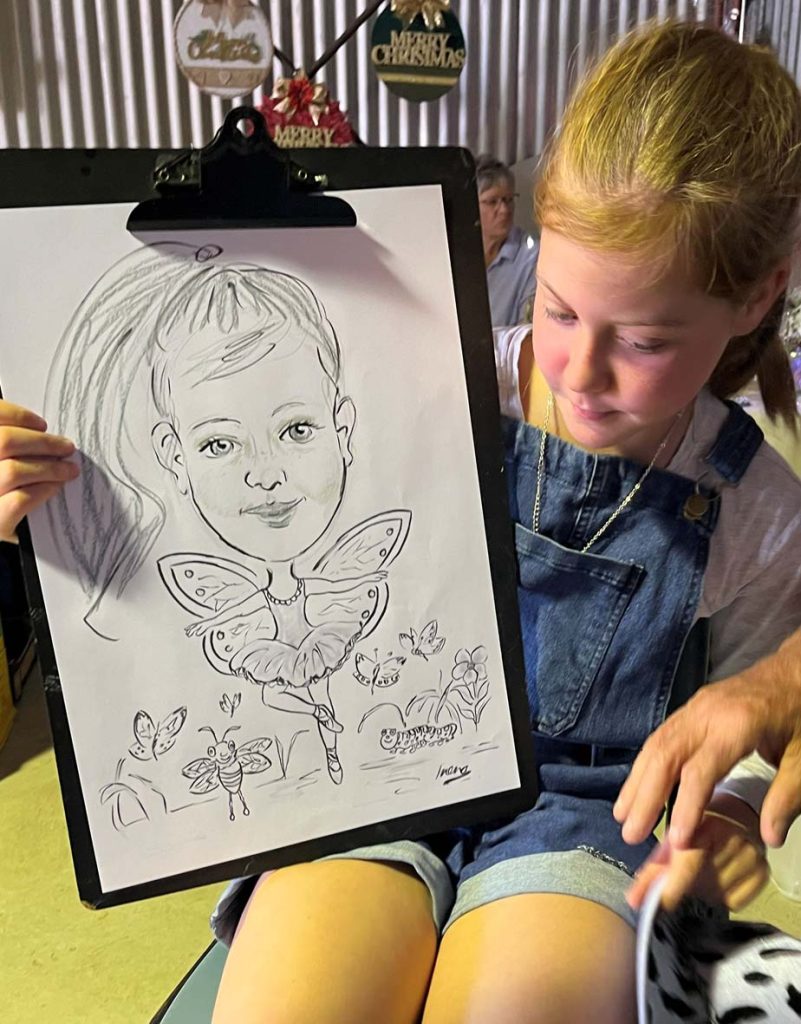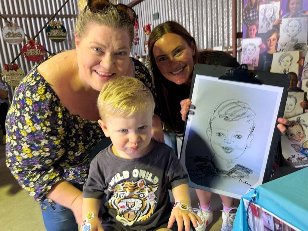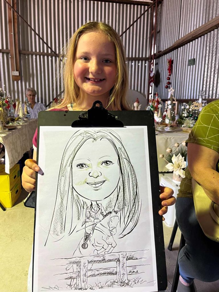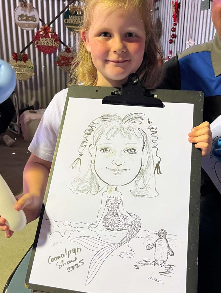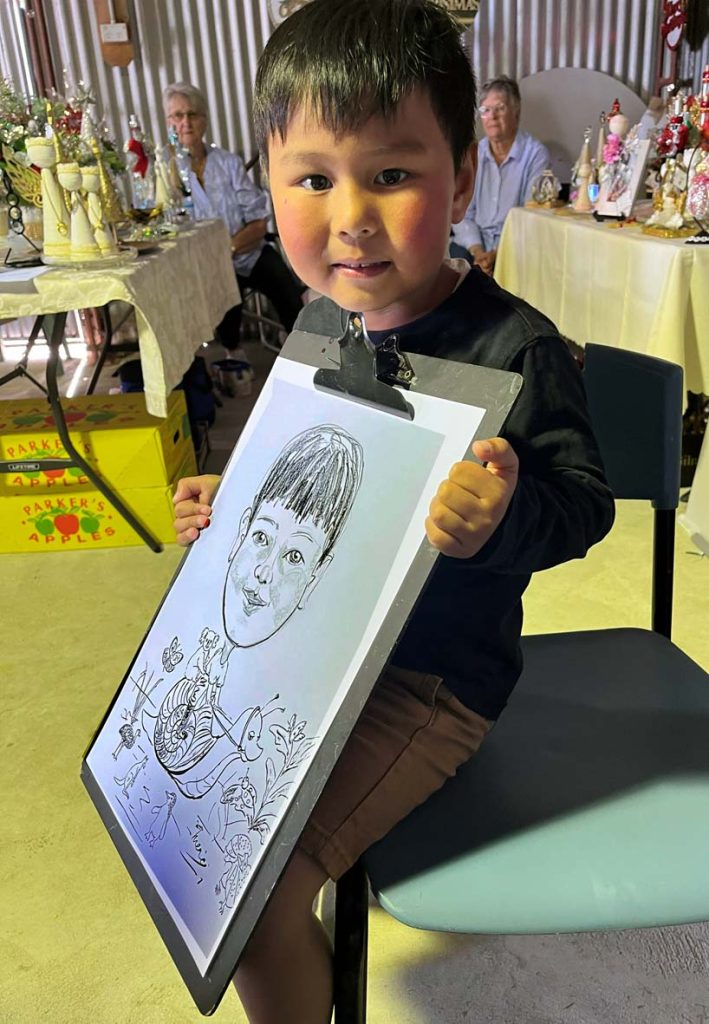 The Coonalpyn Township is one of a few small towns dotted along Dukes Highway A8 on the way to Adelaide, with a population about 815 people.  The Show started in the early 1940’s to showcase the local produce and is the only show remaining in the Coorong District, people attend the show from afar such as Adelaide, Mt Gambier and other towns to visit a community run Country Show and Coonalpyn celebrating its 80th with classic sections including Jams & Preserves, Art & Craft, Knitting, Flowers/dress designed by using plants and flowers etc.  There were so many activities in the large showgrounds such as horse events, a small train for children and numerous other activities. Throughout the day a Scottish band and popular music band played music. The weather held out and I was located in a pavilion; many of the children I sketched live in the nearby farms and told me this year was a particularly good crop session. Community groups such as the Lions Club have their sausage sizzle, hamburgers, donuts & chips to tempt the crowds and a Skin cancer check van.
